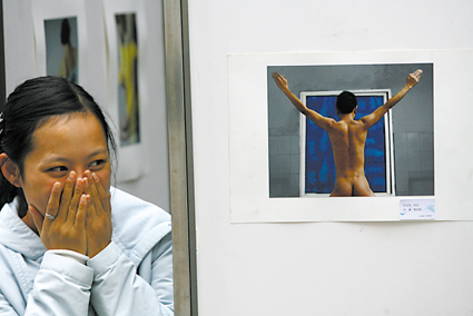 據(jù)展覽的主辦者吳俞閑介紹,他們都是廣告攝影專業(yè)06級的學(xué)生,新學(xué)期,他們接觸到了人體藝術(shù)這門課程,同學(xué)們表現(xiàn)出了極大的熱情,商量著要試拍幾張人體藝術(shù)照片。一開始,他們在校園內(nèi)廣發(fā)傳單,希望有志愿者報名當(dāng)模特,但令他們沒想到的是,幾周下來竟然一個報名的人都沒有!皩W(xué)生們都不太了解人體藝術(shù)!”小吳稱,大家后來一致決定,找不到模特就自己拍自己,而且拍出來的作品要公開展出,讓大家都認(rèn)識人體藝術(shù)的魅力。