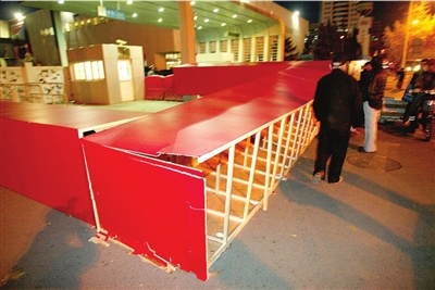 被砸倒的小晴(化名)說(shuō),她和母親到附近的超市購(gòu)物,回家時(shí)從展板前經(jīng)過(guò),當(dāng)時(shí)一陣大風(fēng)吹過(guò)后展板倒塌。小晴的母親說(shuō),小晴沒(méi)來(lái)得及跑開(kāi),被展板砸中腰部,被頂出去數(shù)米遠(yuǎn),她趕緊喊人幫忙想扶小晴起來(lái),但小晴說(shuō)腰疼得厲害,不能動(dòng)彈。