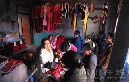 楊俊的家位于擂鼓鎮(zhèn)勝利村1組,緊鄰擂鼓鎮(zhèn)集市,是一棟兩層樓的小洋房。雖然在地震中變成了危房。但這房子一直是朱菊華設(shè)計制作羌族民俗服裝的作坊,她和丈夫晚上都住在這里,分得的板房則由公公婆婆和兩個孩子居住!15日下午,我們最后見到他們。”楊俊的父親楊德富說,當(dāng)時有加拿大客人訪問擂鼓鎮(zhèn),兒子、兒媳就陪著女兒去參加歡迎儀式。歡迎儀式上,女兒航航穿著朱菊華設(shè)計制作的一身淺粉色茂縣風(fēng)格羌服,贏得了很多掌聲,這讓朱菊華夫妻倆很高興;當(dāng)日傍晚,他們還熱情接待了一位前來定做羌服的朋友。