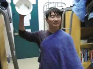 雖然只是簡短的劇本,同學(xué)們動(dòng)了不少小心思。片中有一幕,許仙從小青口中得知白素珍被抓,急得將書本往空中一拋,隨即書本落在地上,導(dǎo)演給了特別的鏡頭,原來是一本大學(xué)英語,這個(gè)搞笑的鏡頭里有小插曲。由于宿舍空間狹小,呂新春拋了幾次,書直接飛到對(duì)面的床上。為了追求效果,邱昊宇事先在地上放一本書,然后把兩個(gè)鏡頭拼了起來。