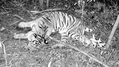 9月8日上午,黑龍江省東方紅林業(yè)局居民到東林林場撿山核桃,在位于林場1林班的地方發(fā)現(xiàn)一具東北虎尸體。接到報案,林區(qū)公安局立即趕赴現(xiàn)場。經(jīng)勘查發(fā)現(xiàn),被害的老虎是一只野生成年雌虎,身長1.55米,加上尾部長2.38米,肩高0.54米,體重97公斤。在它前進的方向只發(fā)現(xiàn)了野豬的足跡,說明它在死前仍然在追野豬。地上的虎毛和虎爪的痕跡清晰可見,顯然它在死前經(jīng)過一陣掙扎。從勒在虎頸部的鋼絲套可以斷定,這個鋼絲套就是導致其死亡的直接原因。經(jīng)鑒定,死去的老虎屬東北虎亞種,系鋼絲套勒頸部窒息死亡。
