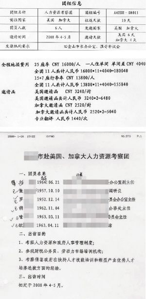 這次因公出國(guó)標(biāo)榜的是人力資源考察團(tuán),目的也很遠(yuǎn)大堂皇:參觀人力資源和政府人事管理制度;參觀財(cái)稅公務(wù)員、勞動(dòng)力市場(chǎng)培訓(xùn)機(jī)構(gòu);考察借鑒政府在扶持人才技能培訓(xùn)和新型優(yōu)秀人才培養(yǎng)選拔方面的經(jīng)驗(yàn)。但在帖中的“考察行程安排”卻看不到任何考察、培訓(xùn)的安排,這些團(tuán)員所要去的地方,全是著名的旅游景點(diǎn)。由這些資料可以看出,本意是讓官員開(kāi)闊眼界,轉(zhuǎn)變思維,學(xué)習(xí)先進(jìn)經(jīng)驗(yàn)的公費(fèi)出國(guó)考察,有些已經(jīng)變異成為公款旅游、購(gòu)物的途徑。