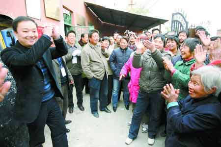前天上午11時許,鄭州市溝趙辦事處牛寨村委會門口,村民們踮起腳尖,看新當選的村主任長啥模樣。