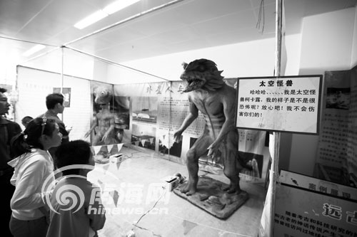 學(xué)生在參觀“太空怪獸”