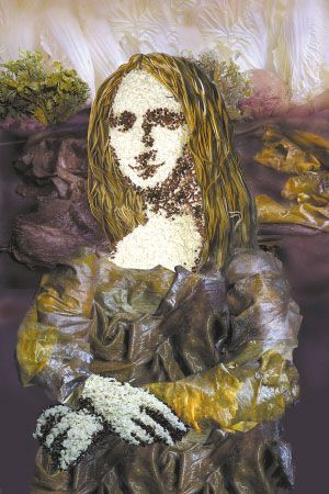 《蒙娜麗莎》、《最后的晚餐》……這些世界名畫早已被人們耳熟能詳。但最近,這些真跡卻遭到了一位重慶美女藝術(shù)家的逼真“克隆”,而她采用的材料不是畫筆,是土豆、生姜、番茄等各類在菜市場隨處可見的蔬菜。日前,畢業(yè)于川美的桔多淇和她的作品在國內(nèi)藝術(shù)市場逐漸躥紅,其創(chuàng)作的“豆腐蒙娜麗莎”、“姜人之最后的晚餐”已經(jīng)賣到了2萬元的高價。但這樣一幅作品的創(chuàng)作成本不到10元。
