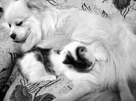無意中撿回一只剛出生的小貓,竟和家里養(yǎng)的小狗歡歡結成了“母子”,更讓家住東郊的王先生覺得稀奇的是,這幾天,從未當過“媽媽”的歡歡竟有了妊娠反應,用它自己的奶水喂養(yǎng)起了小貓。