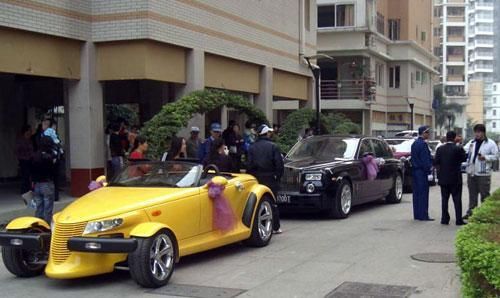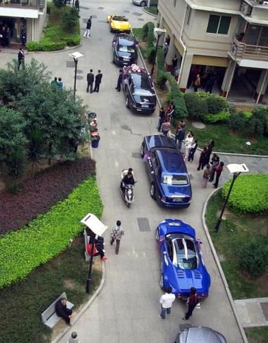 貌似并不高檔的小區(qū)內(nèi),卻出現(xiàn)了超豪華的強(qiáng)悍車隊(duì):“獵獸”開頭,后面跟著三輛“幻影”,以及“賓利”“世爵”等車(如圖)。昨日,一則《福州某集團(tuán)老總嫁女,豪車云集》的帖子在某網(wǎng)站論壇走紅,該帖描述在福州的碧水芳洲小區(qū),某集團(tuán)老總嫁女,眾多豪車云集,場面壯觀。眾多網(wǎng)友稱,已被這些豪車震得說不出話來了。(成都晚報(bào))