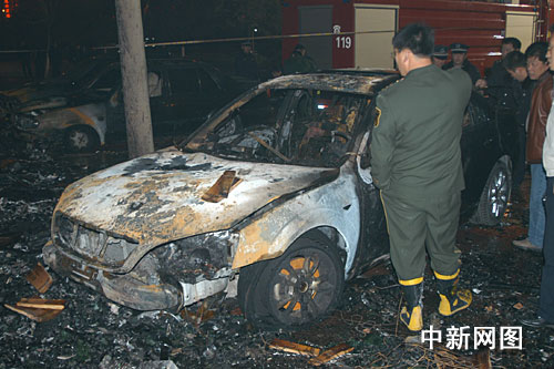 記者在晚七時趕到現(xiàn)場后看到,兩座著火的樓房外墻一片烏黑,停在樓下的五輛汽車都被大火燒毀。起火的小超市內,所有商品都被燒盡,貨架有的甚至被煉成鐵水。在現(xiàn)場路邊停放有兩輛運尸車,及至近九時搶險工作結束時,記者看到先后有七具尸體被裝入車內,據(jù)民警講,死者為三男四女。(完)