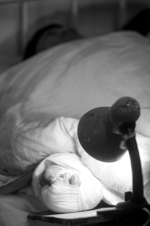 昨日,記者在醫(yī)院見到劉成剛,他躺在病床上,右手小指已經(jīng)接上,醫(yī)護人員表示,現(xiàn)在還需要經(jīng)過幾日觀察期,才能確定手指是否成功接上。