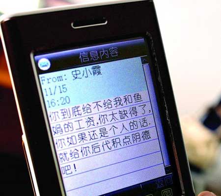 打工妹史小霞和夏養(yǎng)茹互罵的短信 記者李華攝
