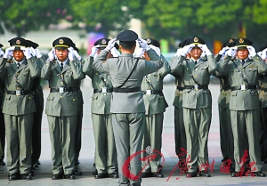 “一、二、三、四”,番禺廣場(chǎng)上,一個(gè)個(gè)城管執(zhí)法隊(duì)員精神抖擻,邁著整齊的步伐從主席臺(tái)前通過(guò)。昨日上午,番禺城管綜合執(zhí)法分局19個(gè)中隊(duì)、600多名城管隊(duì)員在番禺廣場(chǎng)舉行“新城管、新形象——隊(duì)列匯操”活動(dòng)。這是廣州城管部門首次舉行大型的“閱兵”儀式。