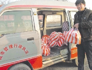 執(zhí)法車上裝滿蒸饃