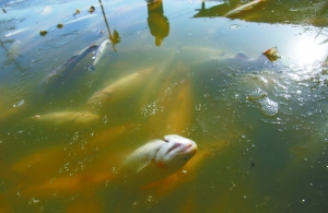 “魚不可能缺氧死亡的,我懷疑有人在下半夜投毒,但也不好說誰干的!崩钕壬f,死去的這些魚每條約重1公斤,批發(fā)價(jià)每斤10多元,這一下子就損失了好幾萬元,警察昨日勘查現(xiàn)場(chǎng)后,已從魚池里取走幾條死魚回去做化驗(yàn)。