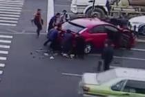 “人形傘柱”雨中為車禍老人撐傘20分鐘
