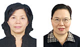 繆水娟(左),全國人大代表杭州高級中學校長、黨總支書記。 |