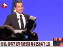 薩科齊發(fā)表競(jìng)選演講,稱自己拯救了法國(guó)。