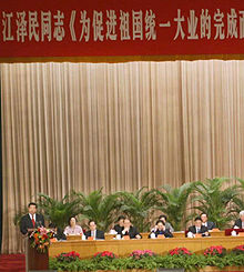 今年是江澤民《為促進(jìn)祖國統(tǒng)一大業(yè)的完成而繼續(xù)奮斗》講話發(fā)表十周年,1月28日下午,北京人民大會堂將舉行一個隆重的紀(jì)念活動,中央領(lǐng)導(dǎo)屆時將出席活動并發(fā)表重要講話。