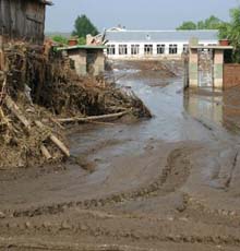 圖:洪水沖襲過的沙蘭鎮(zhèn)小學(xué)