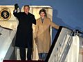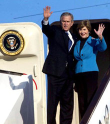 圖:美國總統(tǒng)布什夫婦走下舷梯