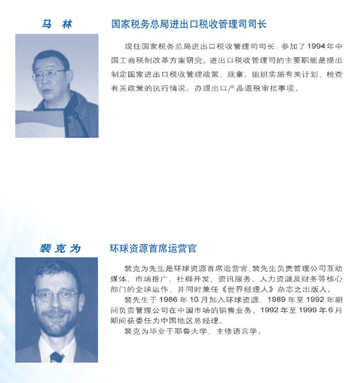 首屆年會于2003年1月10日在北京召開。邀請了包括原外經(jīng)貿(mào)部副部長龍永圖在內(nèi)的各有關(guān)政府部門領(lǐng)導(dǎo)、專家學者、企業(yè)家400多位嘉賓參加……<全文>