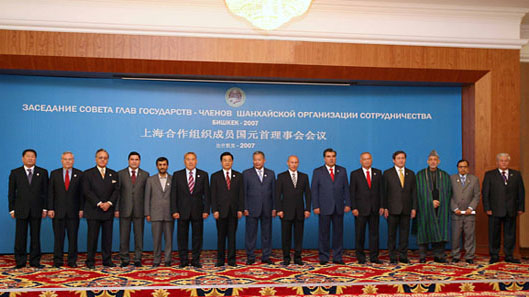 2001年6月14日,“上海五國” 元首在上海舉行第六次會晤,烏茲別克斯坦以完全平等成員的身份加入“上海五國”。15日,6國元首舉行首次會晤,并簽署了《上海合作組織成立宣言》,宣告上海合作組織正式成立。
