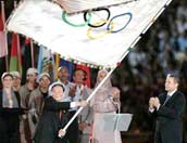 北京奧運會籌備大事回顧 王岐山在雅典接過奧運會旗 |