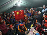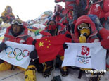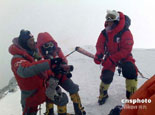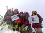 登山隊(duì)員在珠峰頂合影 |