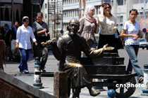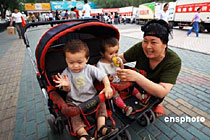 圖:烏魯木齊街頭的龍鳳雙胞胎