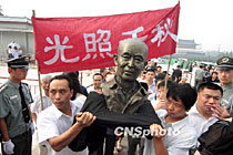 圖:民眾抬雕像送別國學大師季羨林