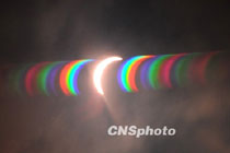 中國各地觀測(cè)日食奇觀:日全食重慶“生光”