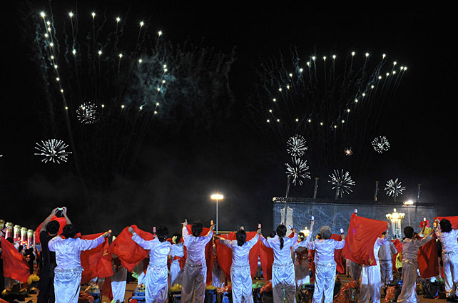 絢麗煙花綻放天安門廣場(chǎng)上空