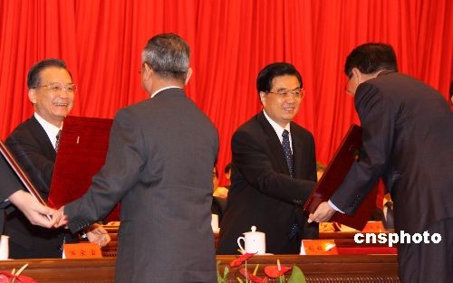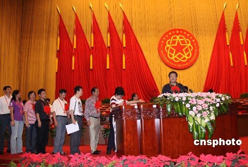 胡錦濤溫家寶向受表彰的先進(jìn)集體和個人代表頒獎