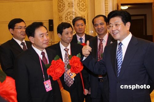 圖:王兆國在人民大會堂接見全國“僑界十杰”