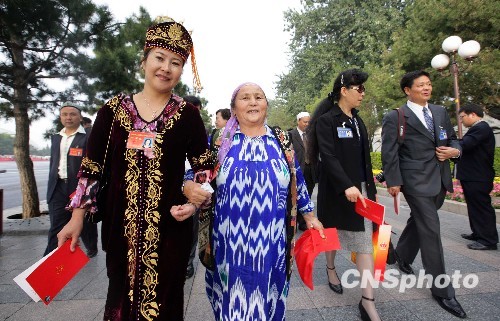 圖:少數(shù)民族代表參加國慶慶典