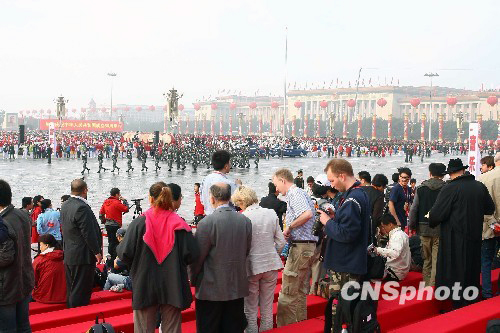 圖:外國游客爭睹閱兵風采