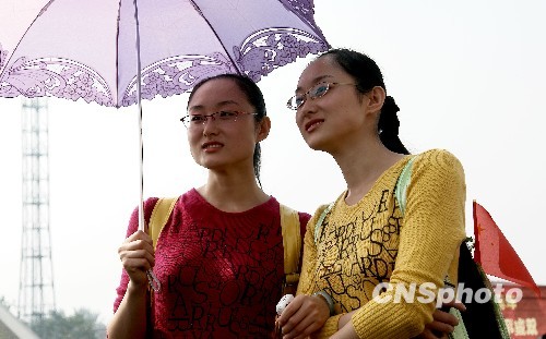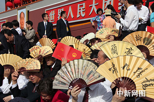 圖:天安門朗日當頭照 觀禮臺嘉賓忙遮陽