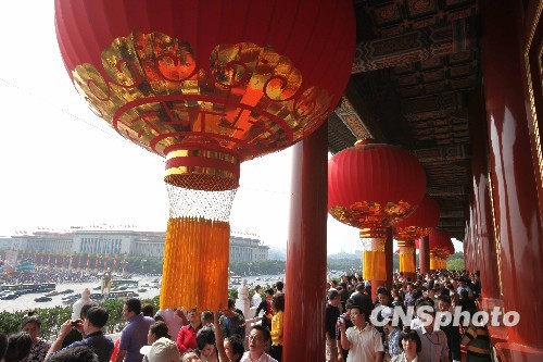 圖:北京天安門廣場節(jié)日氣氛濃郁