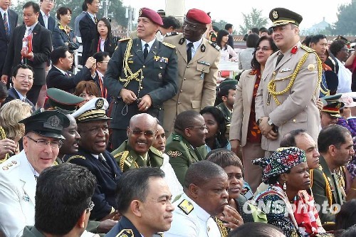 外國武官云集觀禮臺 準備觀看閱兵儀式