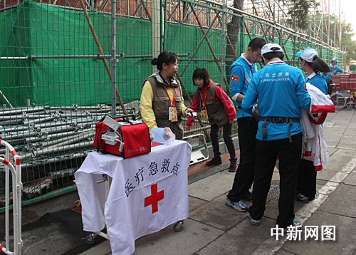 圖:天安門觀禮臺下醫(yī)療點就位