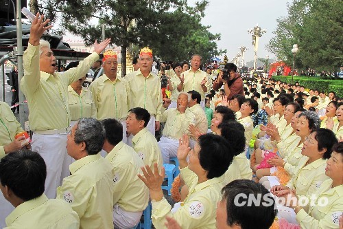 圖:身著民族服裝的少女天安門廣場翩翩起舞