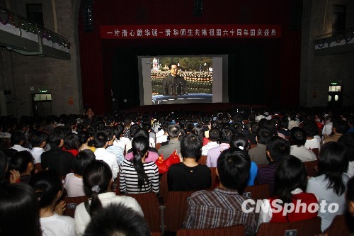 圖:清華學子觀看國慶慶典直播