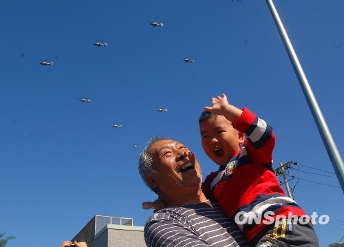 圖:祖孫倆目睹國慶閱兵盛況