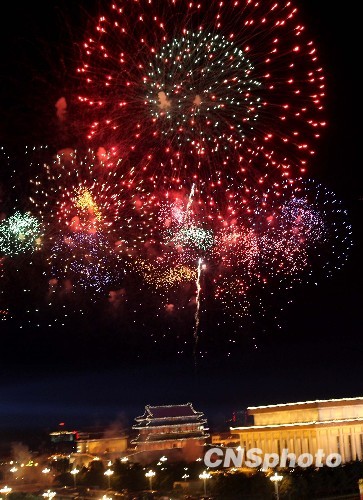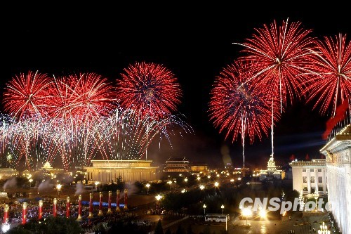 圖:天安門廣場上空璀璨的煙火