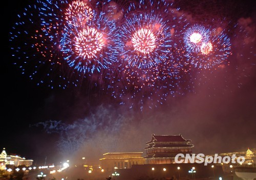 圖:煙花綻放國慶六十周年聯(lián)歡晚會