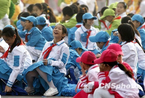 圖:等待國慶盛典開始的孩子們