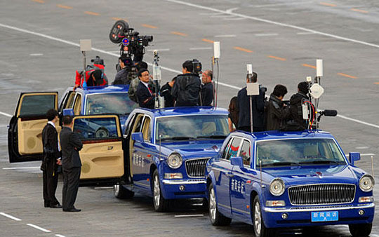圖:國慶盛典現(xiàn)場的紅旗牌采訪車