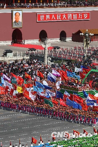 國(guó)慶慶典:“國(guó)徽和國(guó)慶年號(hào)”方陣