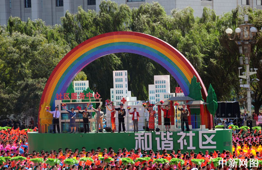 國(guó)慶慶典:新疆彩車亮相群眾游行隊(duì)伍