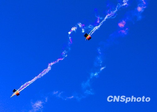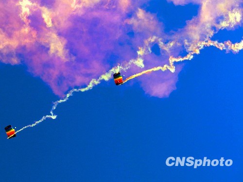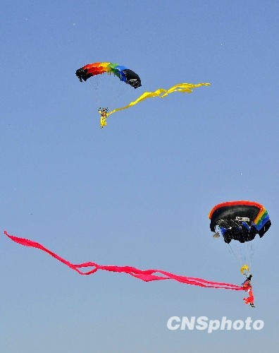 慶祝空軍成立60周年跳傘表演猶如仙女散花(7)