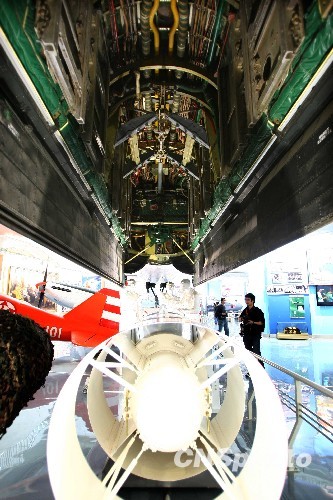 空軍武器裝備成就展:飛機(jī)裝填氫彈的模擬演示
